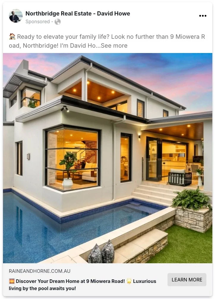 “I'm so pleased we discovered this platform. We're dominating social media in our area and reaching way more potential clients than we ever could with REA and for a whole lot less!! The AI Ad Machine is a total game changer for us.”